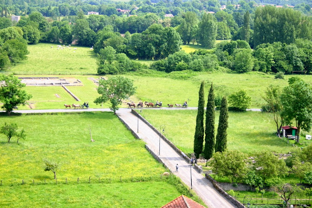 La voie verte continue vers St Bertrand. La cathédrale est somptueuse mais il faut se la gagner...Perchée à 50m au-dessus de la plaine, une belle côte permet d'y accéder : Thomas l'avale au train, Cécile à l'endurance, et moi je prends le temps de faire des photos.