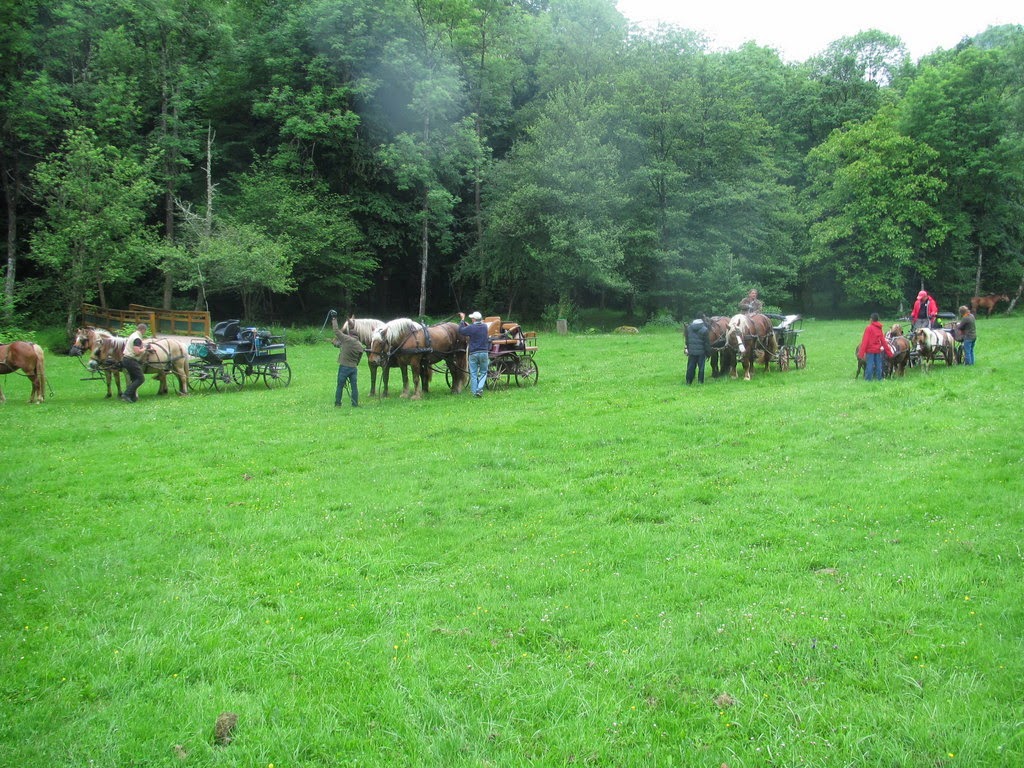 Nous attendons les attelages qui ont, eux aussi, géré la grimpette avec brio, merci aux chevaux, et repartons dans une descente somptueuse vers la vallée. Superbe paysage que viennent égayer quelques rayons de soleil.