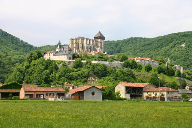 La voie verte continue vers St Bertrand. La cathédrale est somptueuse mais il faut se la gagner...Perchée à 50m au-dessus de la plaine, une belle côte permet d'y accéder : Thomas l'avale au train, Cécile à l'endurance, et moi je prends le temps de faire des photos.